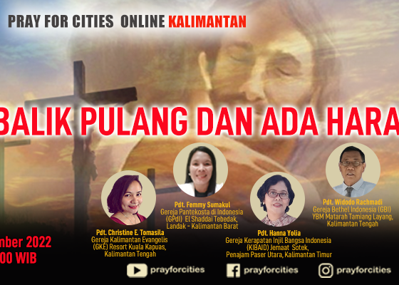 Pray For Cities Online Jakarta Selatan, Tangerang Selatan dan Depok Hari/Tanggal: Jumat, 23 September 2022Pukul: 17.00 WIBThema: “Yesus Sang Penyelamat” Dilayani oleh:• Pdp. Daniel Butar-butar.,…