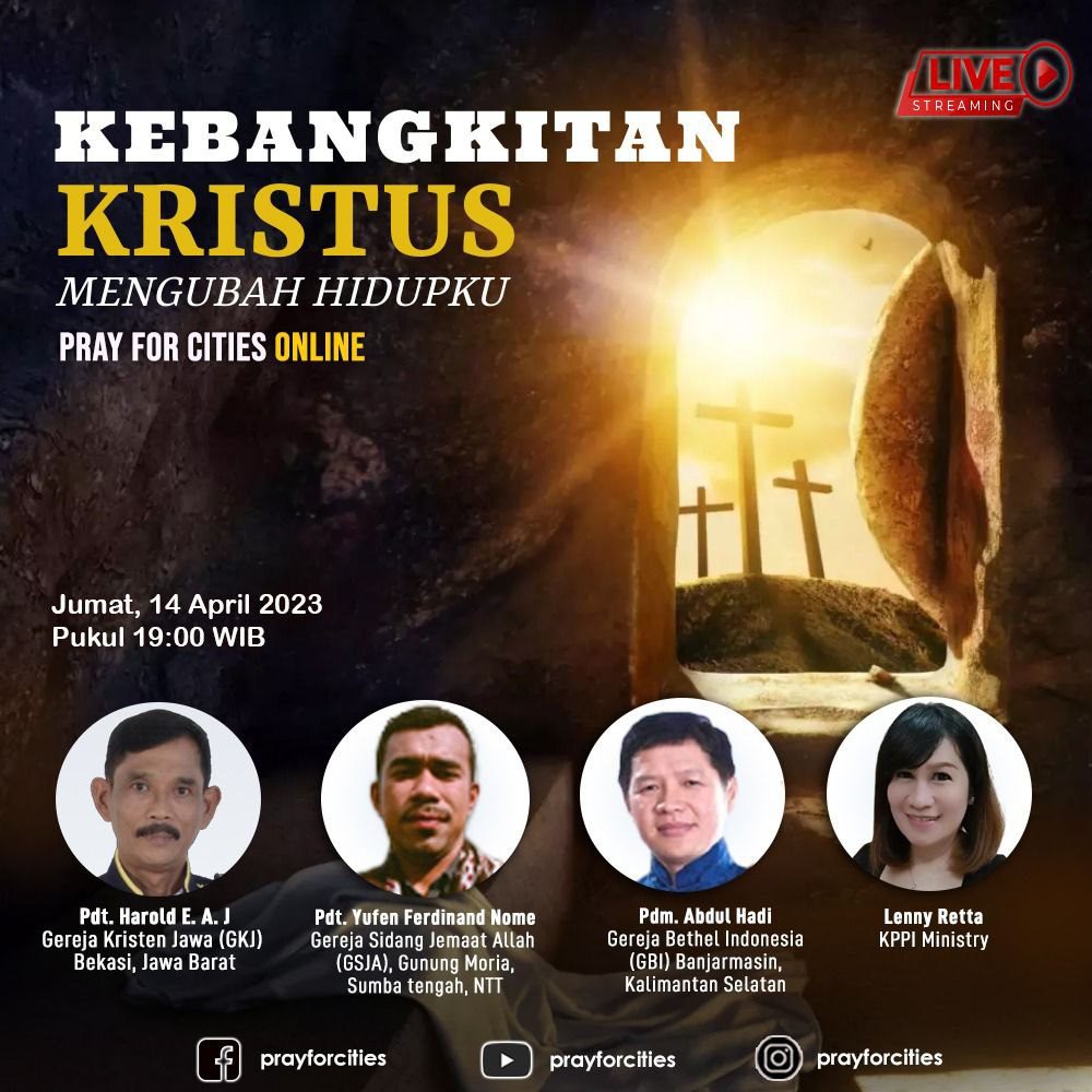 Puji Tuhan hari ini berlangsung Pray For Cities online yang ditayangkan melalui Facebook, Instagram dan Youtube, hari Jumat 14 April jam 19.00 WIB.