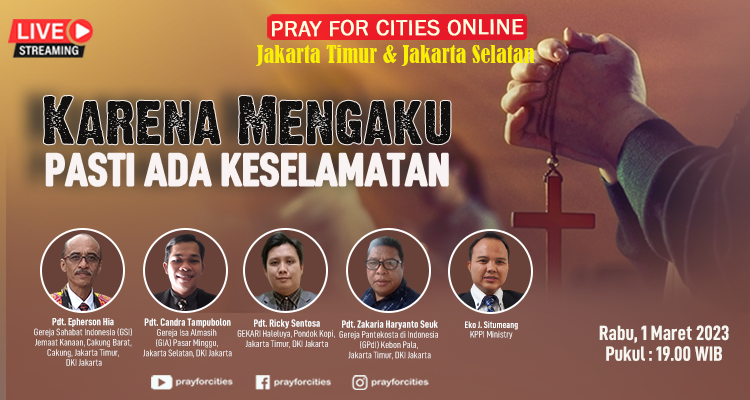 Puji Tuhan acara Pray For Cities Jakarta Timur & Jakarta Selatan dapat diselenggarakan dan dapat disaksikan secara online melalui Facebook, YouTube dan Instagram.