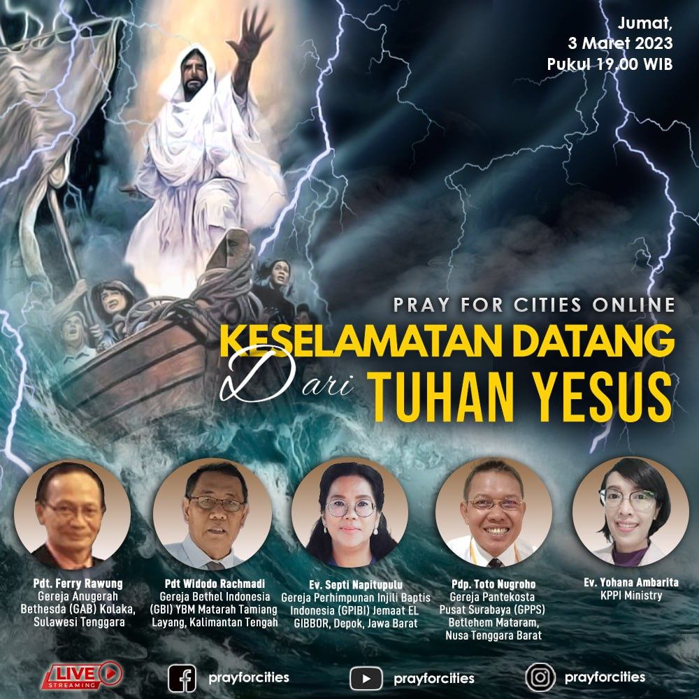 Puji Tuhan acara Pray For Cities secara online dapat diselenggarakan kembali pada hari Jumat 3 Maret 2023 dan dapat disaksikan secara online melalui Facebook, YouTube dan Instagram.