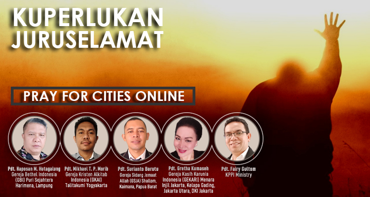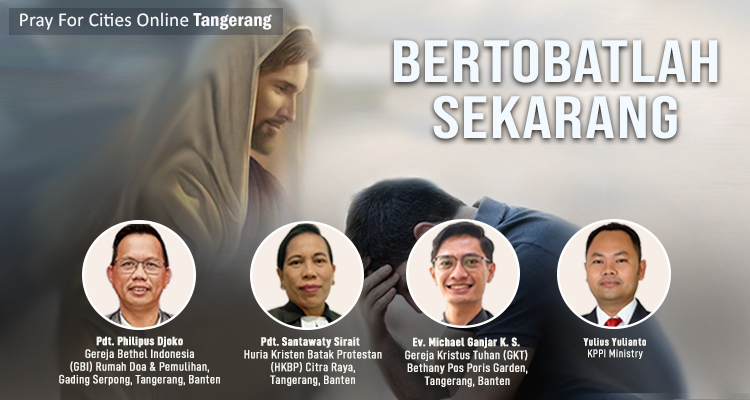 Pray For Cities Online Tangerang Selatan, Tangerang & Depok pada:Hari/tanggal : Jumat, 11 Maret 2022Pukul : 17.00 WIB Dilayani oleh:• Ev. Friska Pasaribu, Gereja Kemah