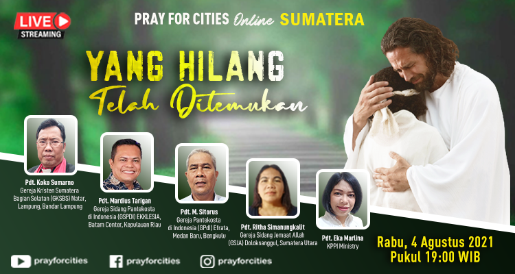 Puji Tuhan acara Pray For Cities Sumatera secara online dapat diselenggarakan kembali pada hari Rabu, 1 September 2021, dan dapat disaksikan secara online melalui Facebook,