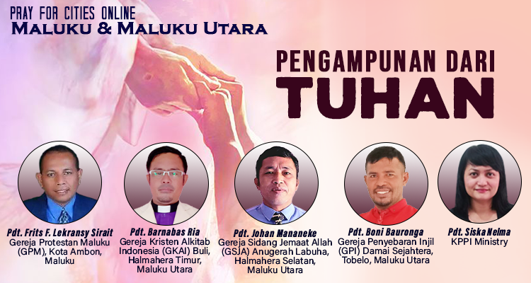 Puji Tuhan acara Pray For Cities Online Maluku dan Maluku Utara secara online dapat diselenggarakan kembali pada hari Rabu, 4 Agustus 2021, dan dapat disaksikan