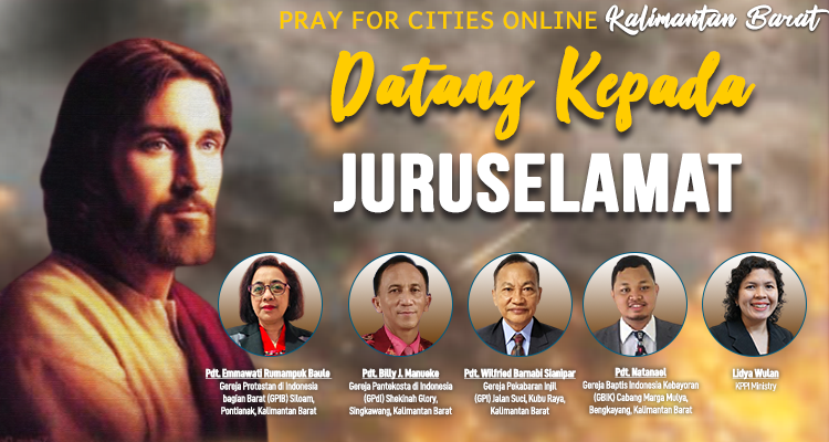 Ibadah Pray For Cities Online Wilayah Kalimantan Barat telah berlangsung pada hari Jumat, 15 Mei 2020 Jam 17.00 WIB, yang ditayangkan melalui Youtube dan Facebook.