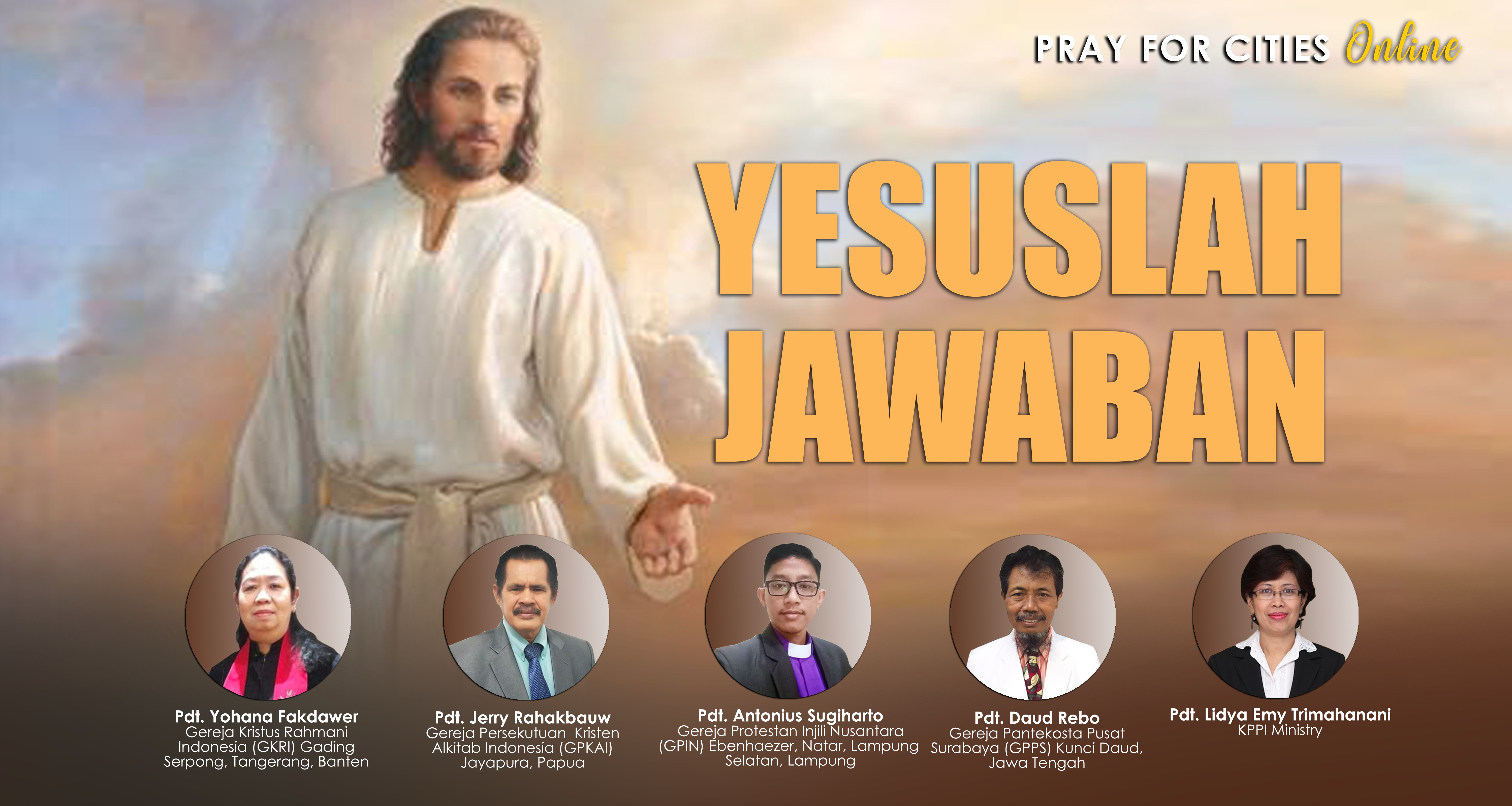 Puji Tuhan untuk Pray For Cities (PFC) secara online dapat diselenggarakan pada hari Jumat, 22 Mei 2020 dan dapat diikuti melalui Facebook dan Youtube. PFC