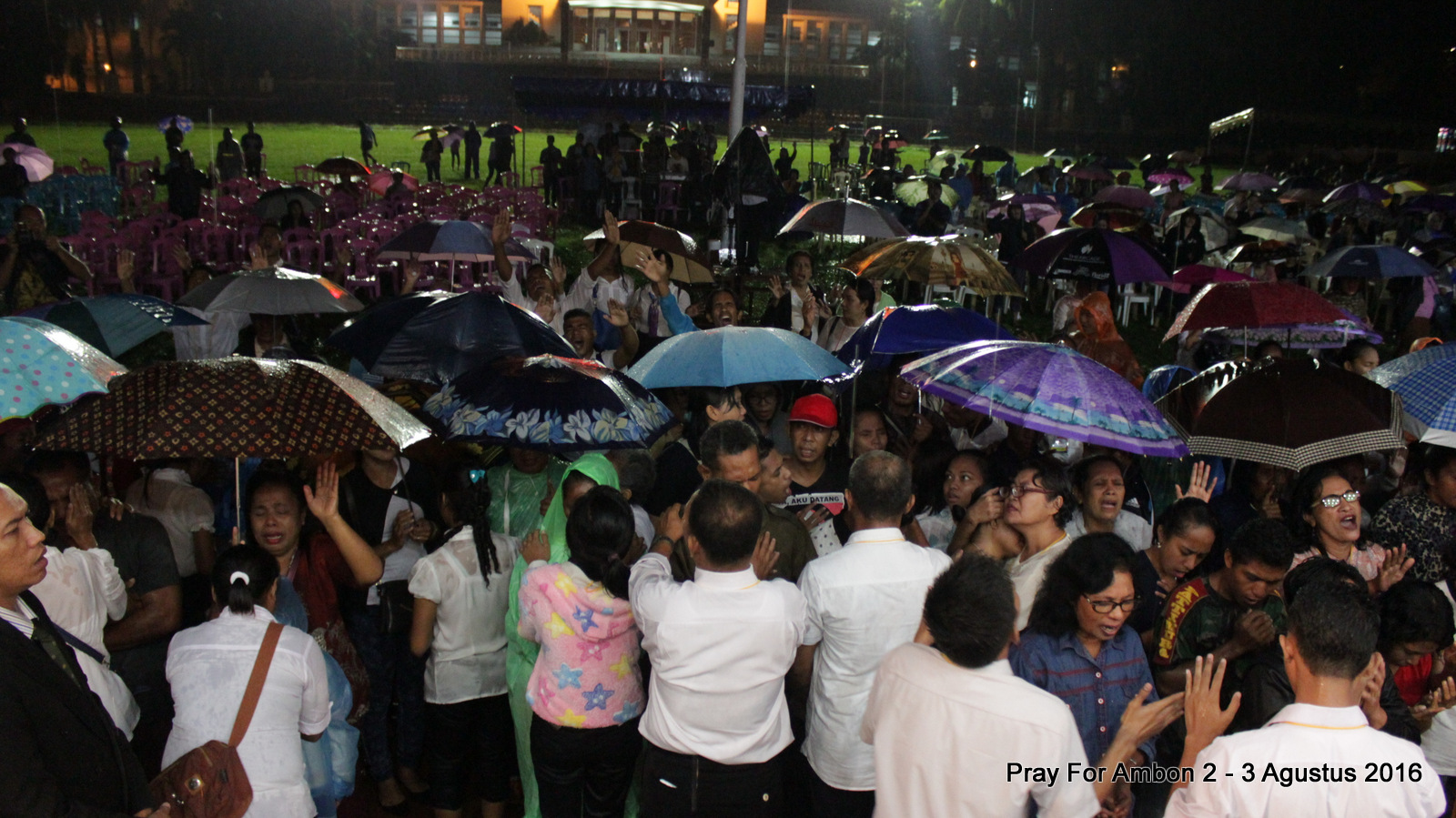Puji Tuhan, untuk pekerjaan Tuhan yang luar biasa di acara Pray For Ambon hari kedua. Walau hujan sempat mengguyur saat kebaktian, tapi tidak membuat 1500