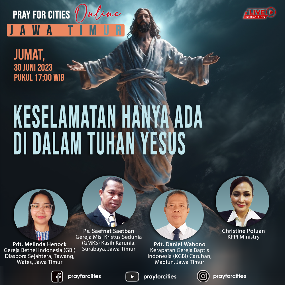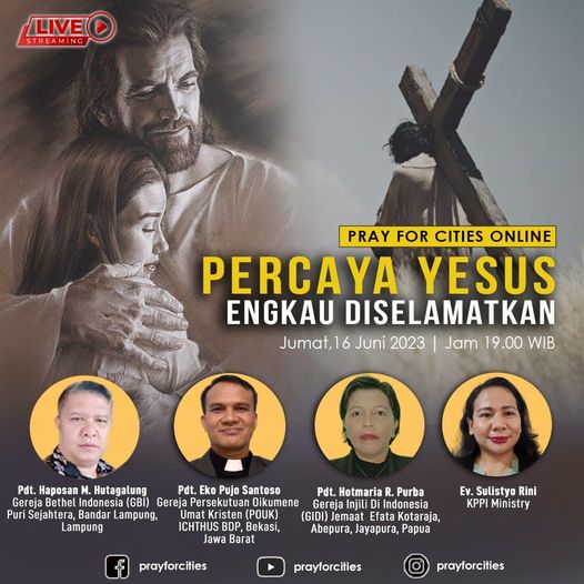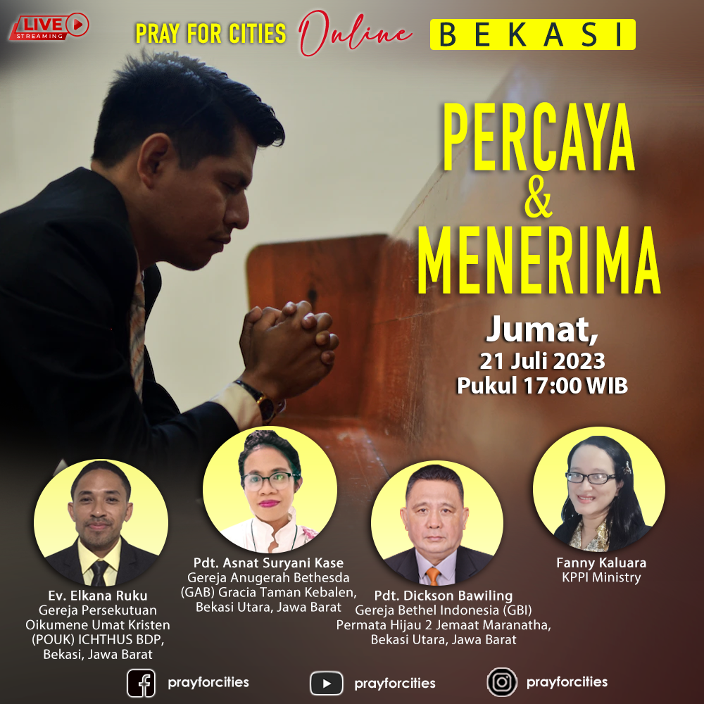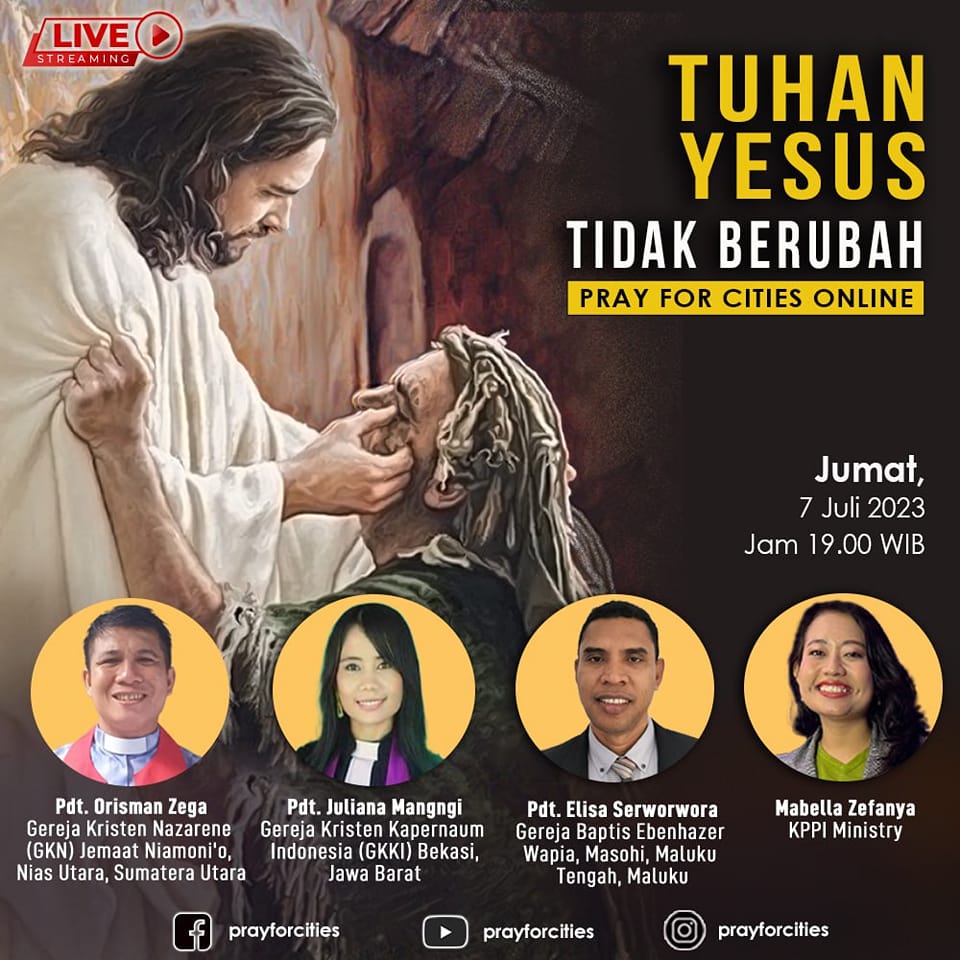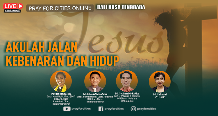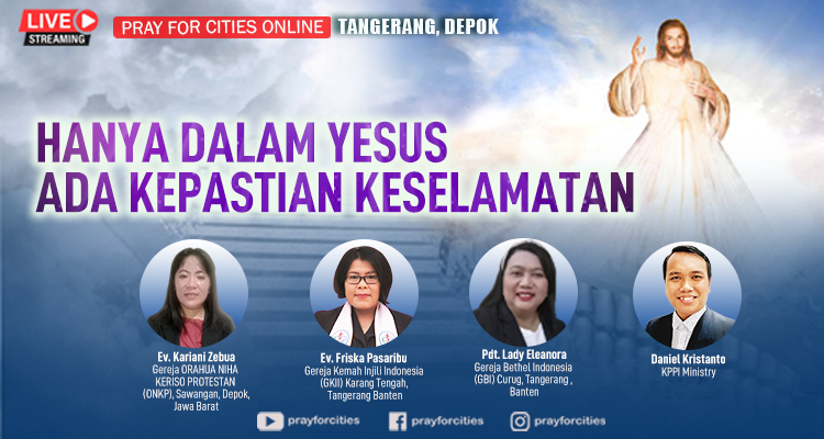 Puji Tuhan hari ini berlangsung Pray For Cities online yang ditayangkan melalui Facebook, Instagram dan Youtube, hari Jumat 7 Juli jam 19.00 wib. Pray For